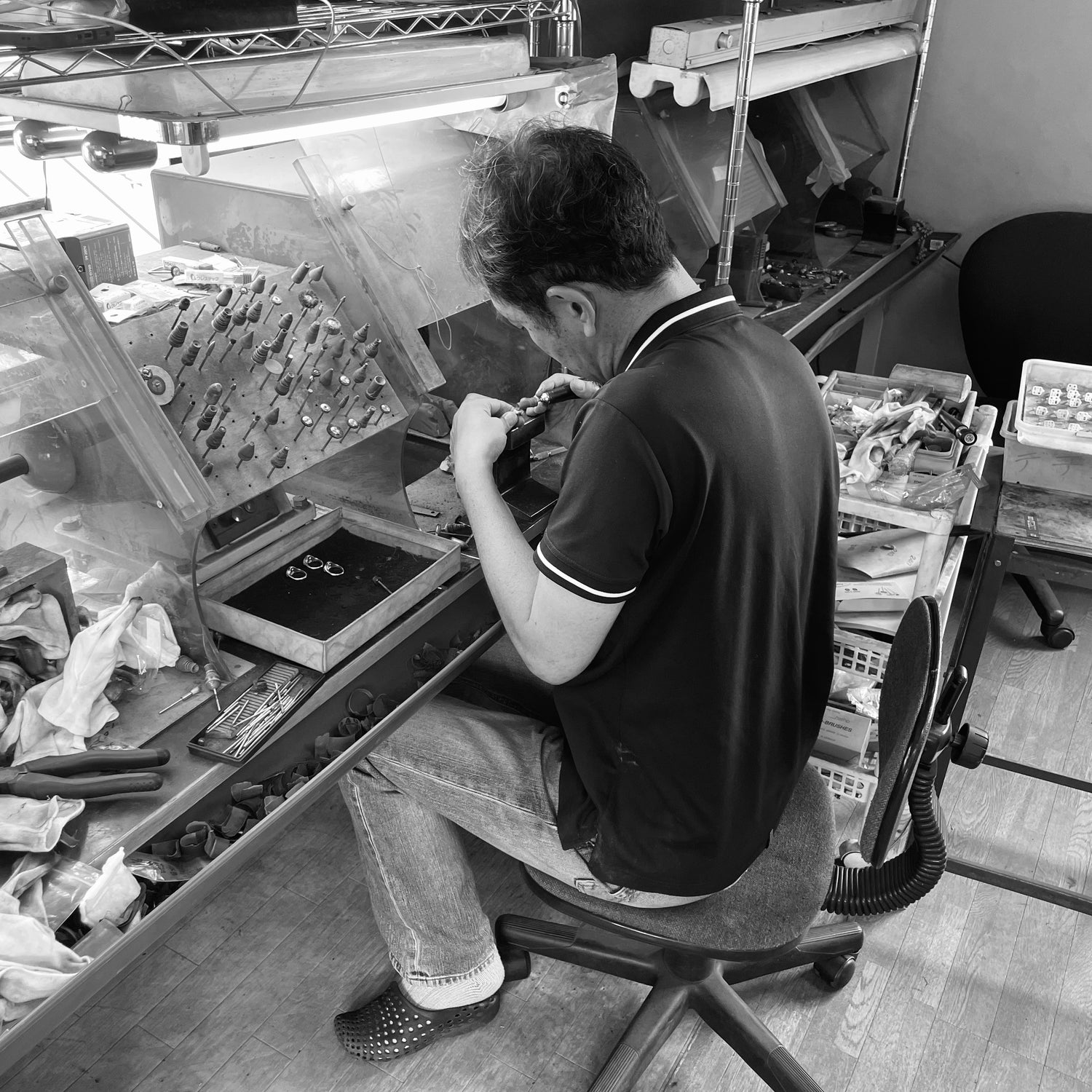 Primitive Paintersのジュエリーは、有数の宝飾産地として知られる山梨県甲府の工房で、熟練の職人たちの手によって一点一点丁寧に仕立てられています。
