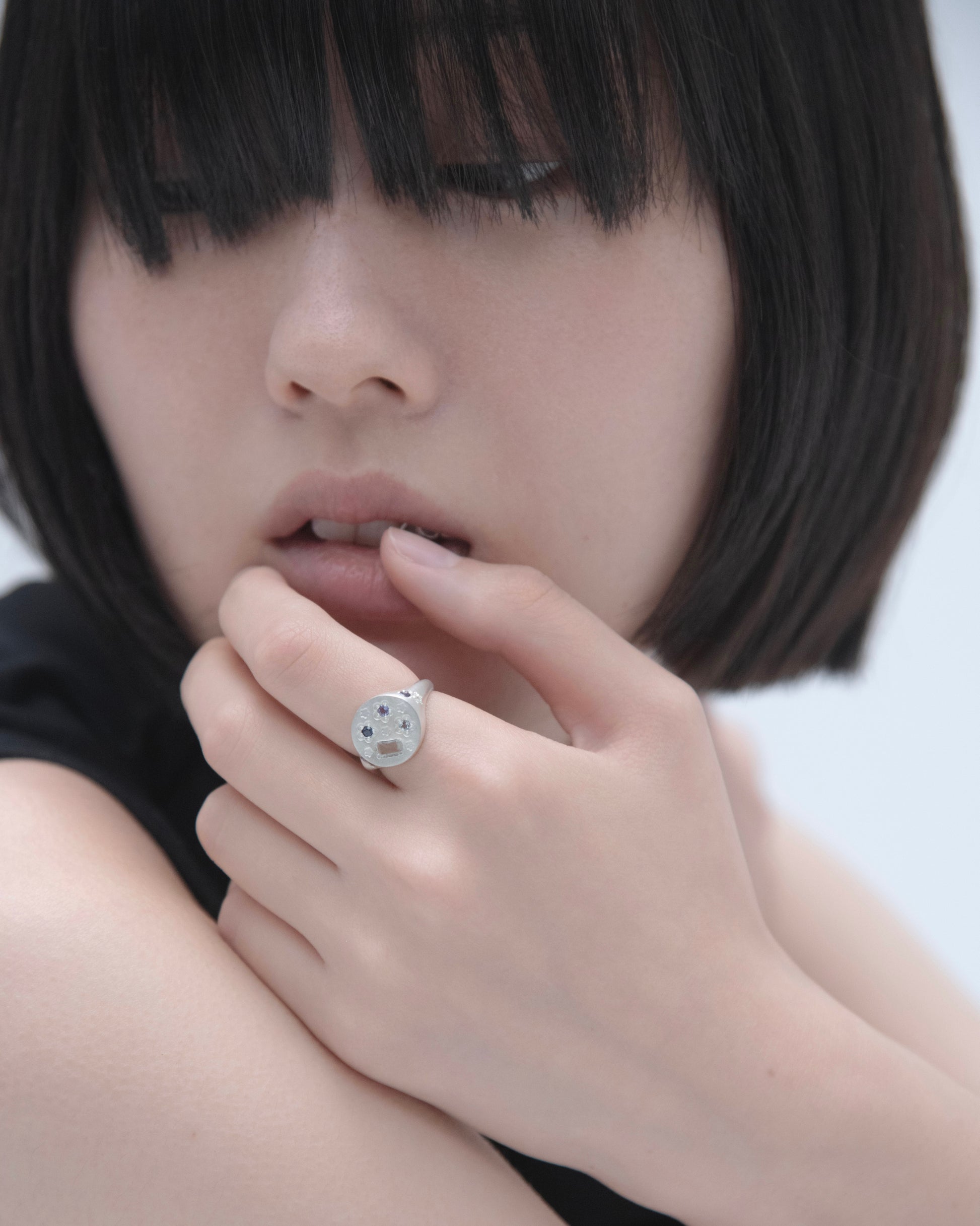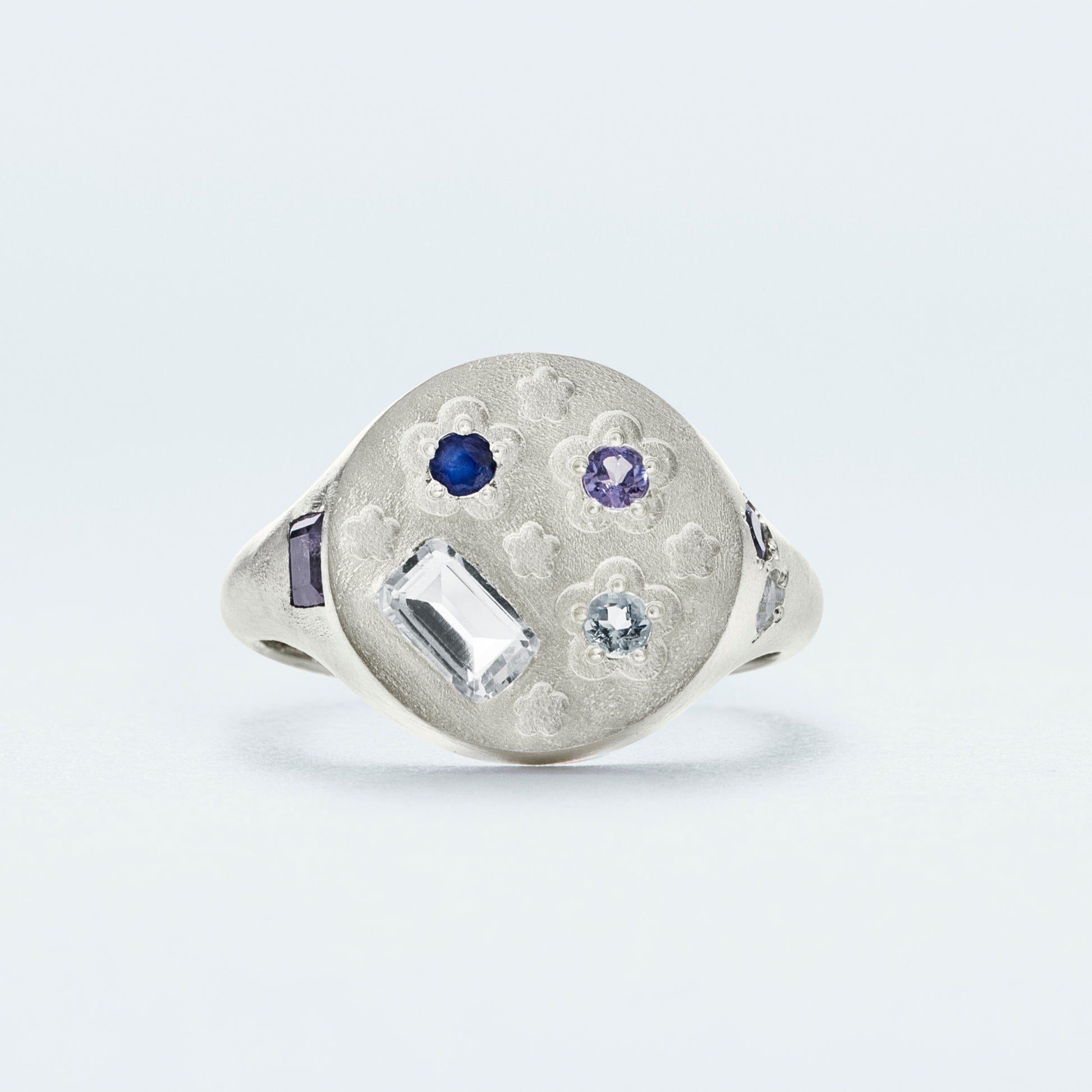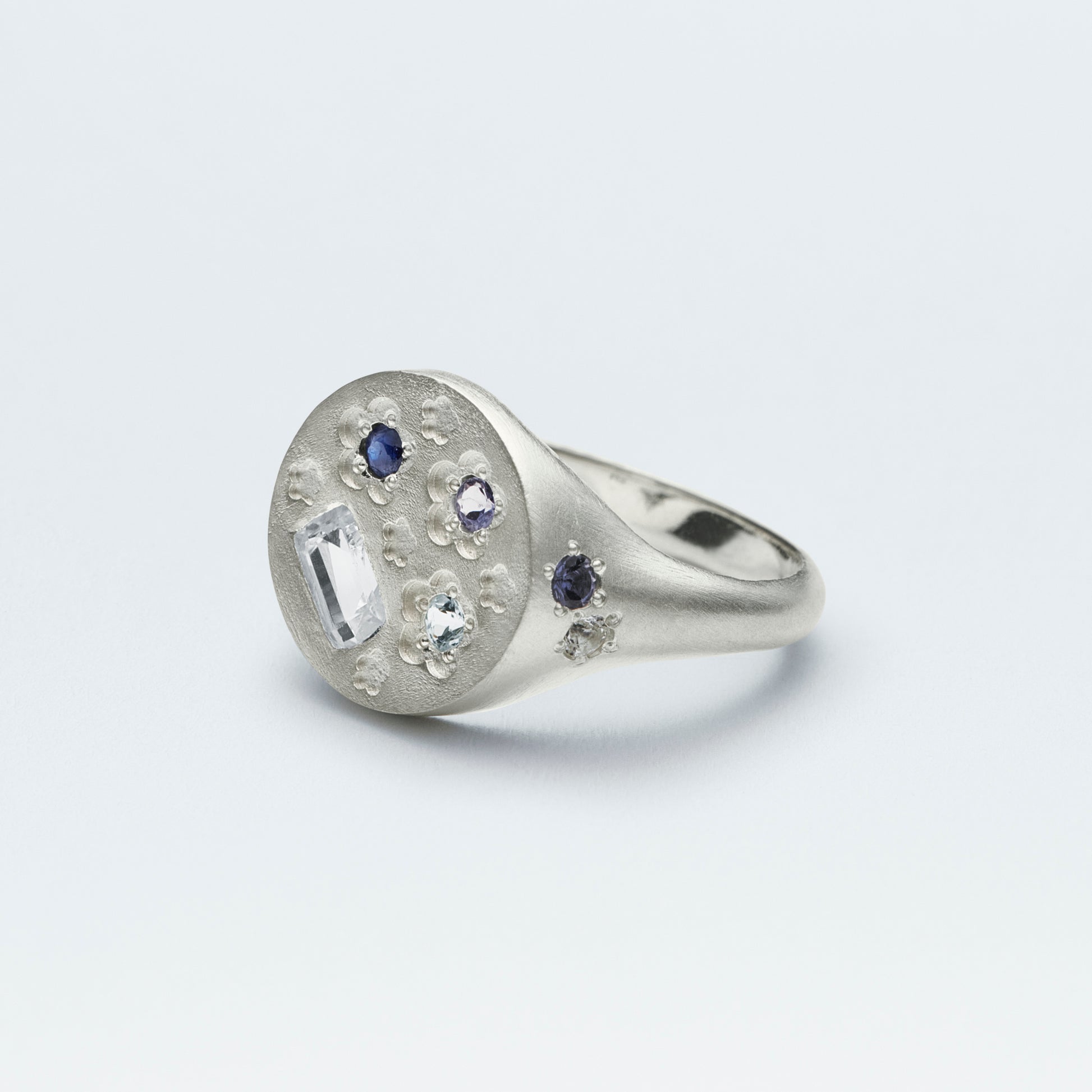 使用石:3×5mm ホワイトトパーズ / 3×3mm アイオライト / 2mm ホワイトトパーズ / 2mm サファイア / 2mm タンザナイト / 2mm アクアマリン