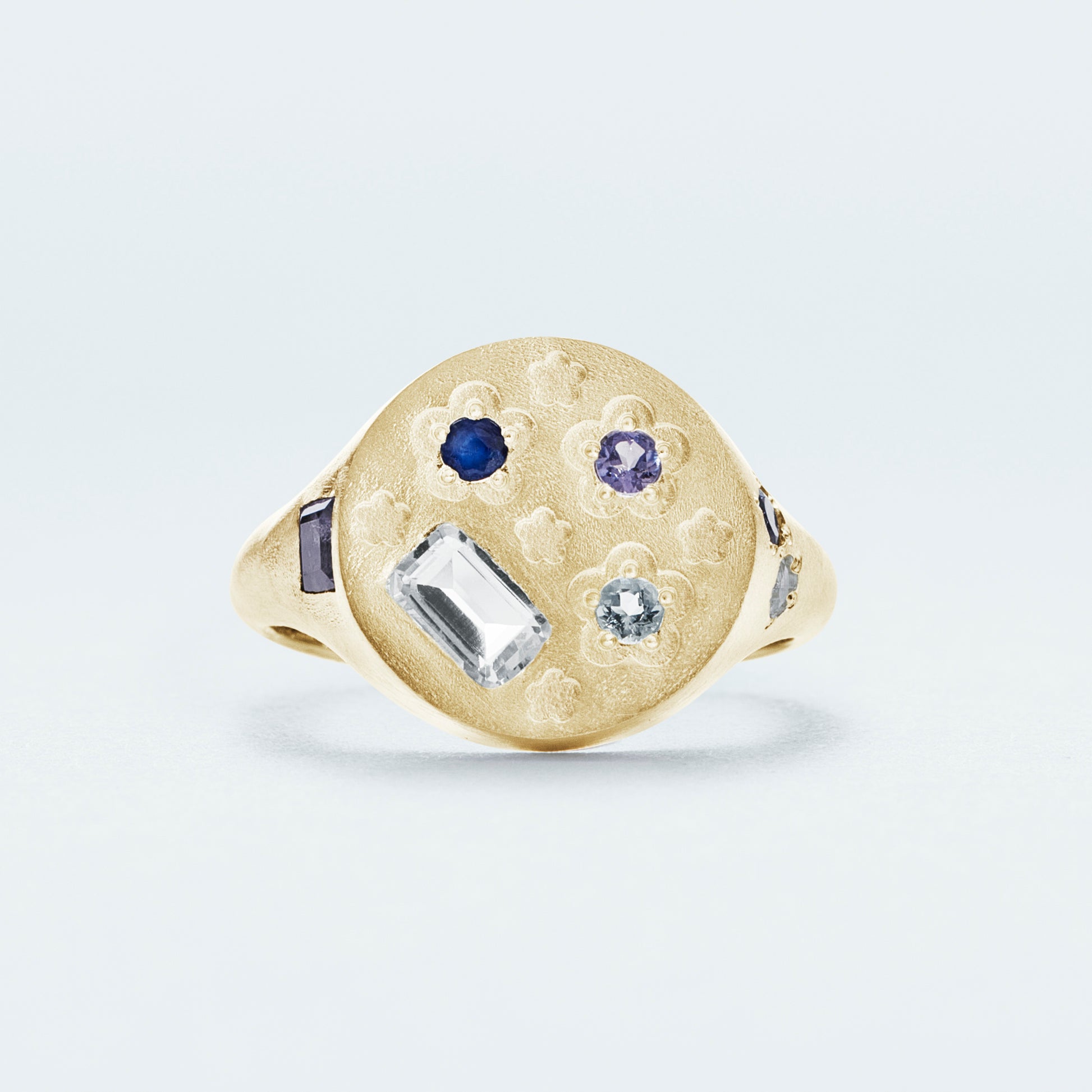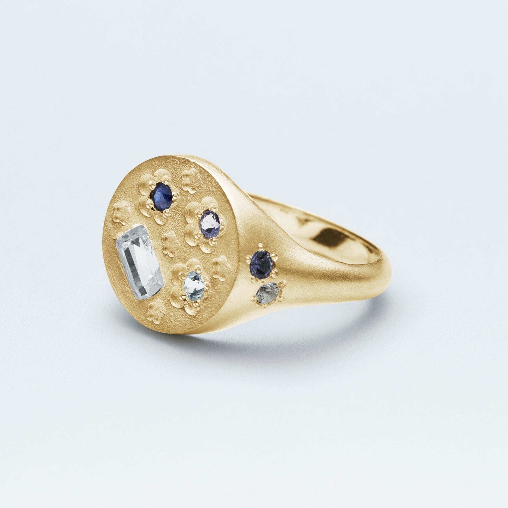 Flower Signet Ring / Gold-Coated SV925 / Blue