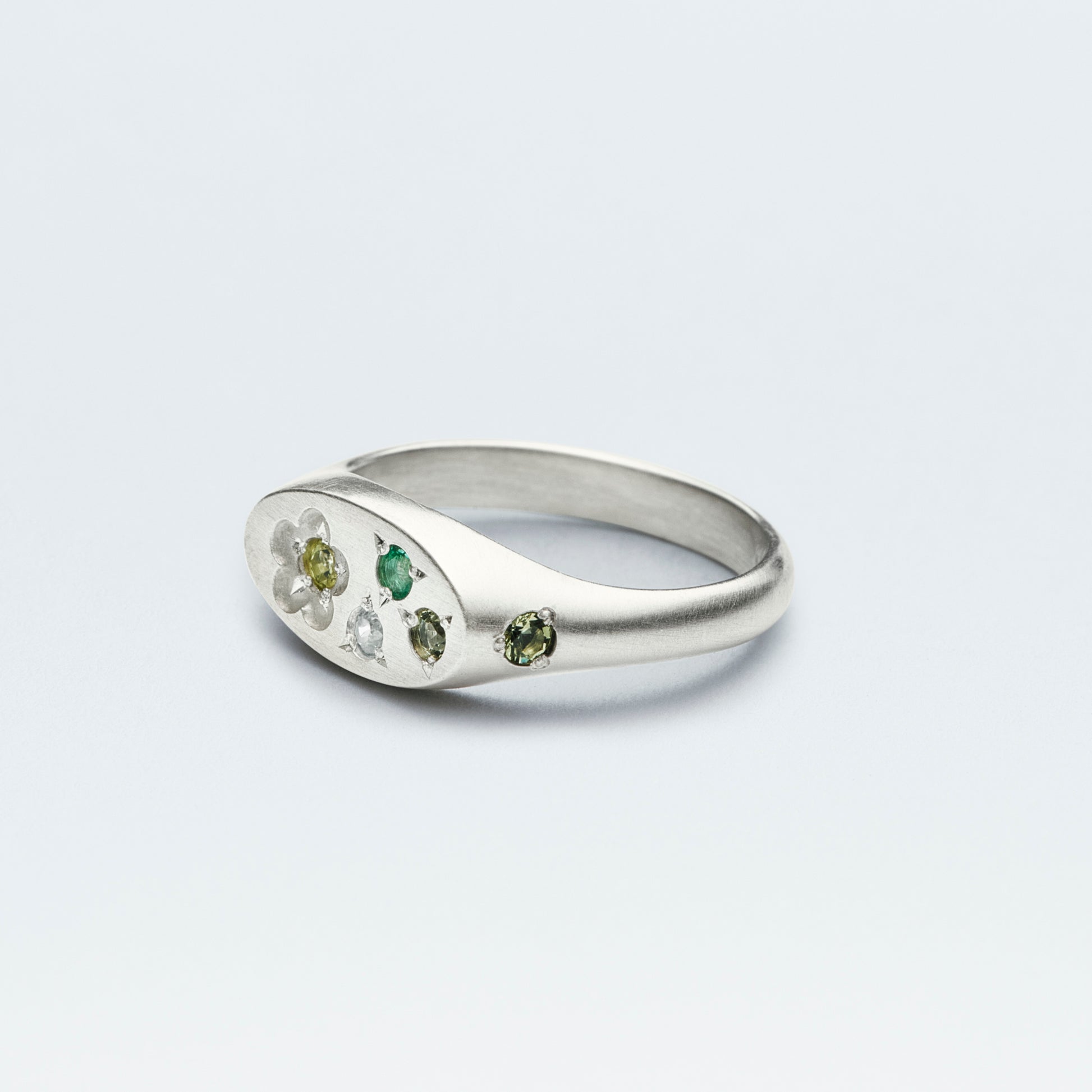 使用石:2mm エメラルド / 2mm ペリドット / 2mm グリーンサファイア / 2mm ホワイトトパーズ