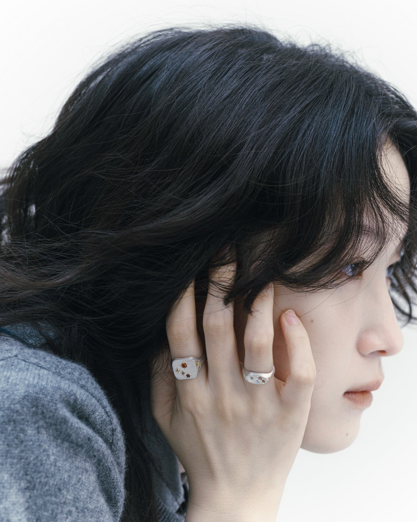 使用石:2mm イエローサファイア / 2mm オレンジサファイア / 2mm マンダリンガーネット / 2mm ホワイトトパーズ