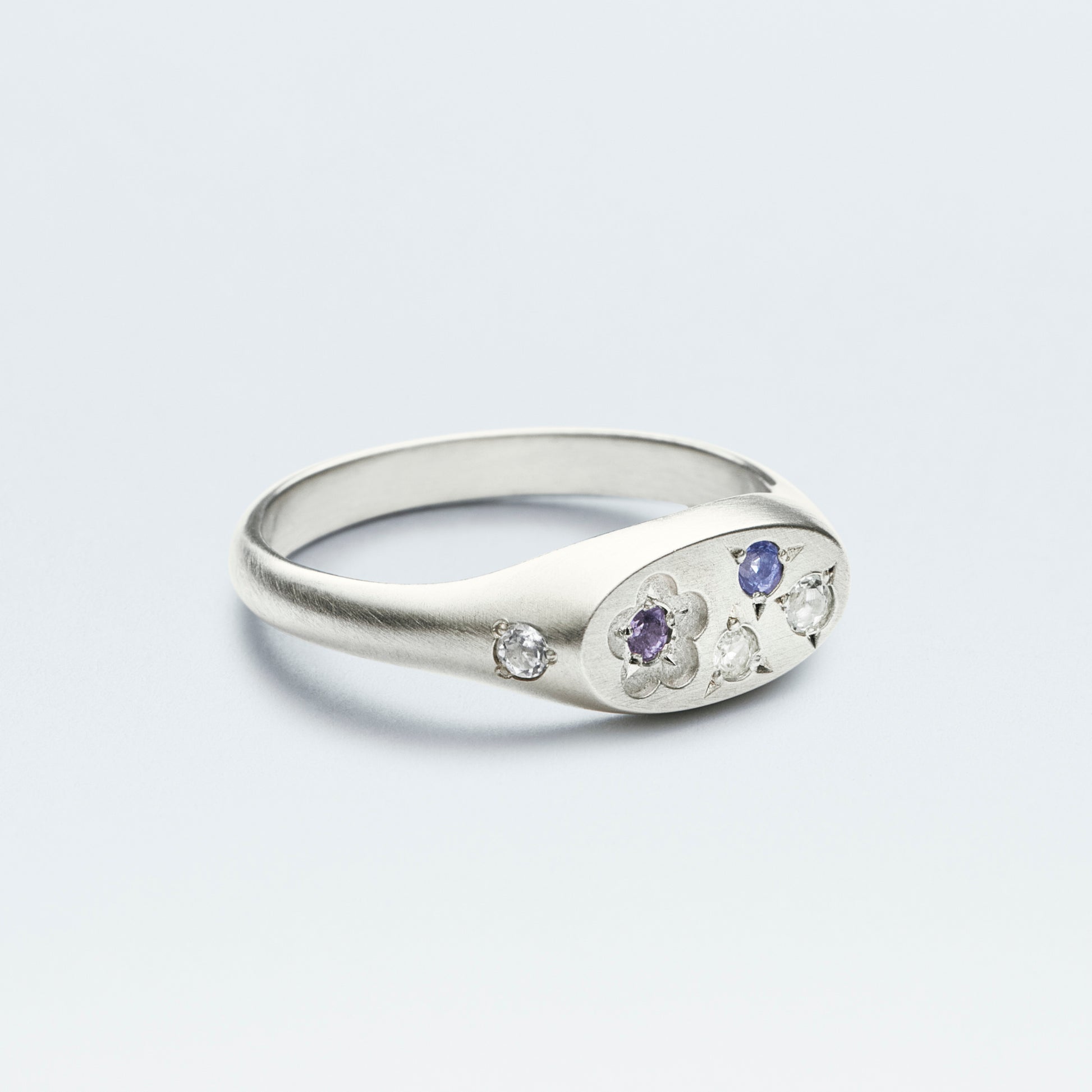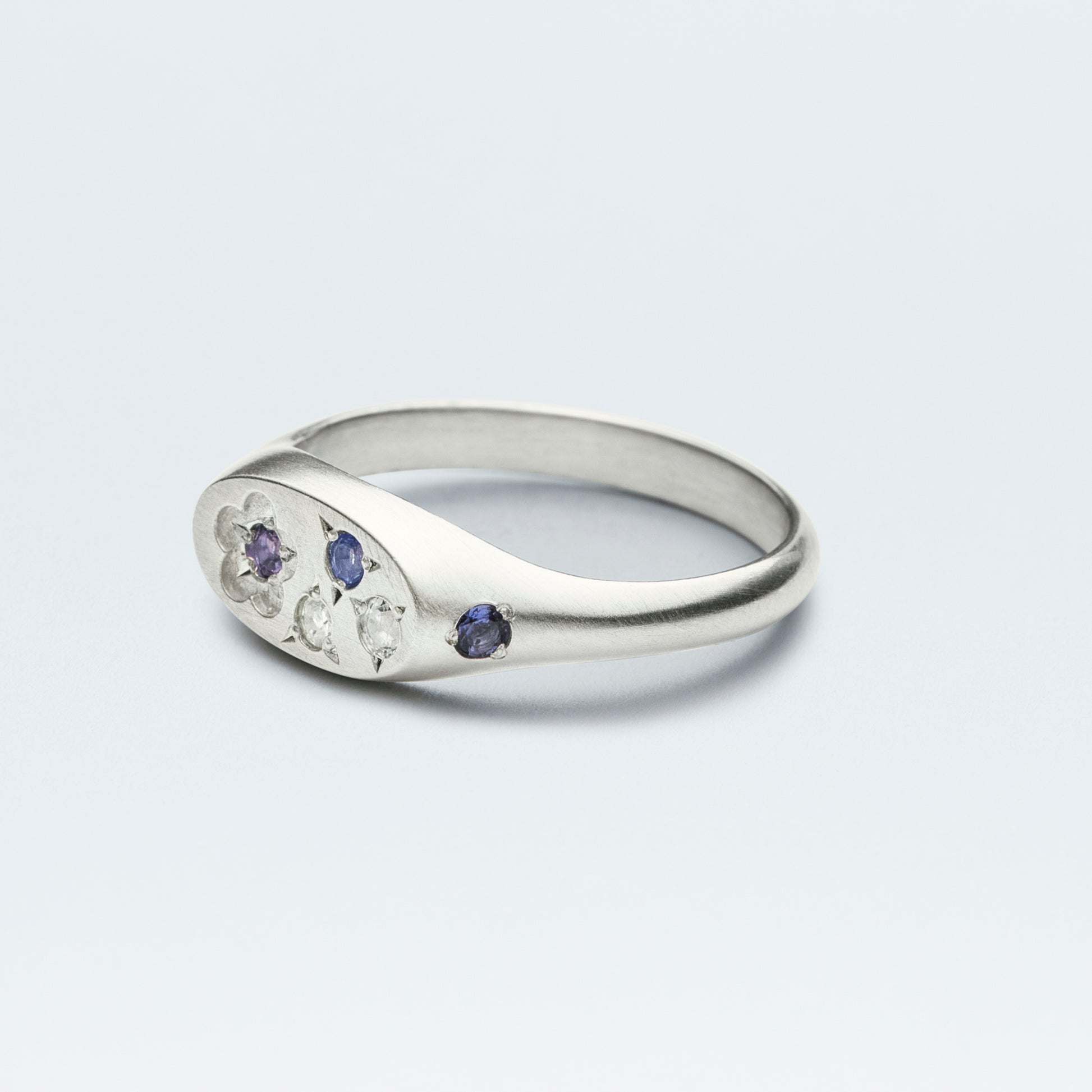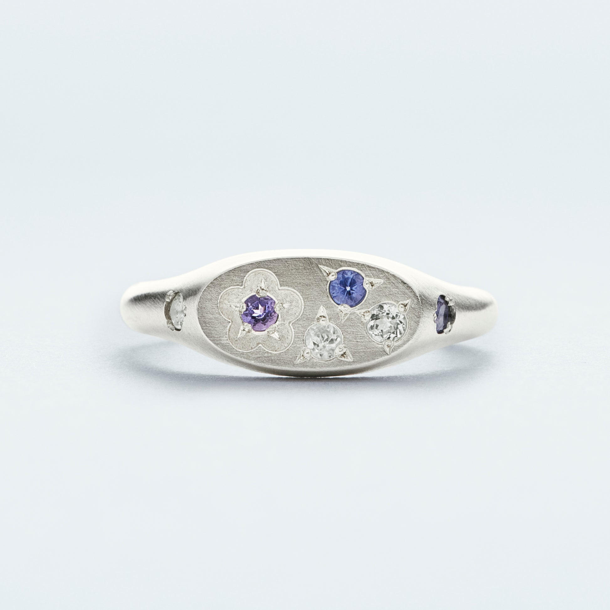 使用石:2mm アイオライト / 2mm アクアマリン / 2mm タンザナイト / 2mm ホワイトトパーズ