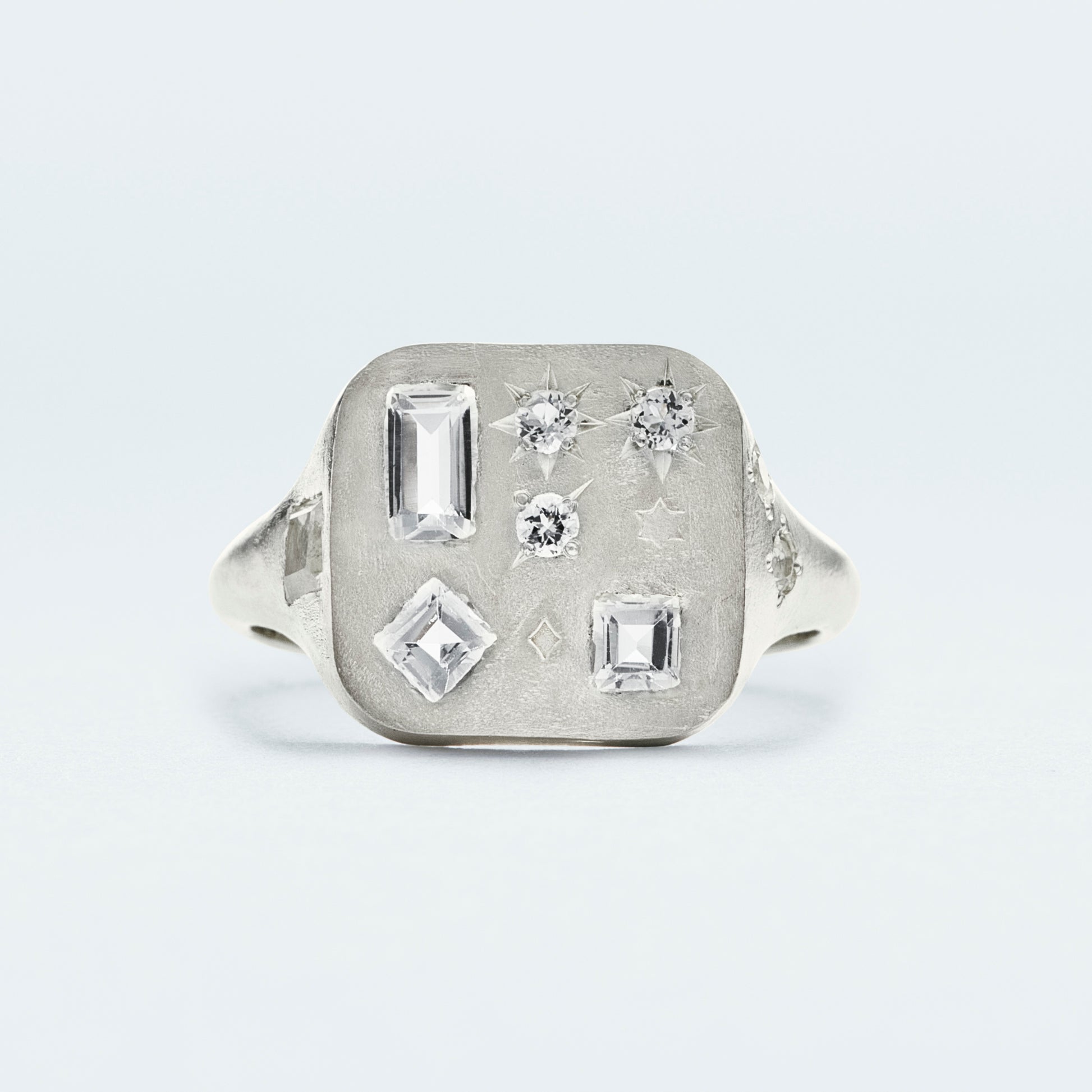 Stones: 3×5mm White Topaz / 3×3mm White Topaz / 2mm White Topaz